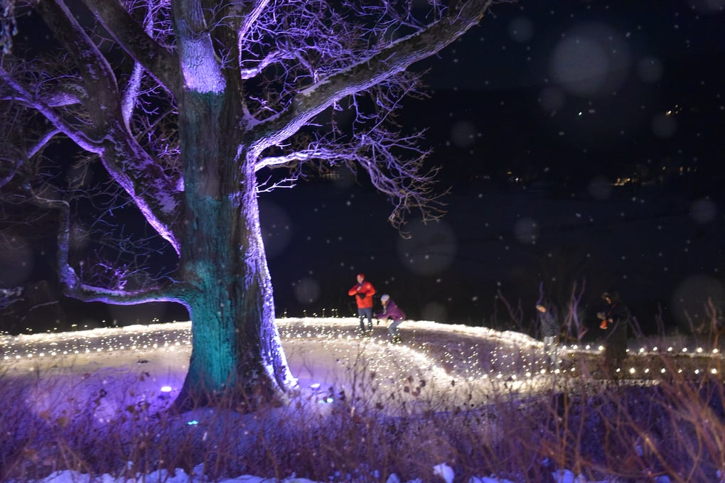 Trees and foliage: Aim wireless uplighters upwards to create dramatic silhouettes and colour washes through branches.